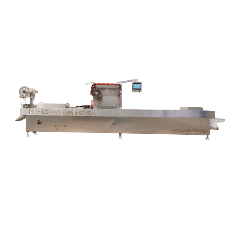 全自動(dòng)拉伸膜真空包裝機(jī)底膜和頂膜運(yùn)動(dòng)時(shí)表面還應(yīng)適當(dāng)張緊,不然成型時(shí)和封口時(shí),在封口區(qū)會(huì)出現(xiàn)折皺以至影響封口質(zhì)量。張力調(diào)整由張力調(diào)整機(jī)構(gòu)完成。張力調(diào)整機(jī)構(gòu)裝在滾筒軸上,由彈簧和調(diào)整螺母和軟聚乙烯制動(dòng)片組成。通過(guò)調(diào)整可以改變滾筒所需的回轉(zhuǎn)力矩。調(diào)整方法:軸向向里調(diào)動(dòng)張力調(diào)整螺母,膜表面張力增大。